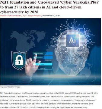 On 5th Dec 2025, at AISS 2025, NIIT Foundation was represented by Vikram Kumar alongside Geetanjali Gaur, Shubhi Takkar, and Robin Sarkar, highlighting cybersecurity in digital literacy