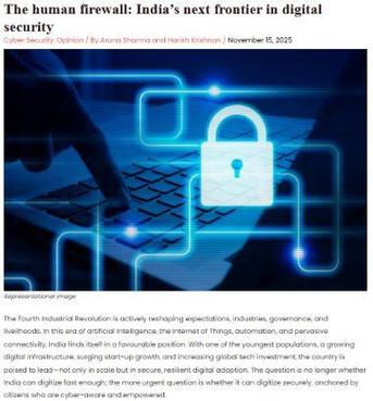 As India grows more digital, citizens are increasingly using online platforms for communication, payments, learning, and essential services This opportunity also comes with rising digital risks fraud, identity theft, misinformation, and unsafe online behaviour. Firsttime users, gig workers, and low-digital-literacy communities often carry the highest risk. Building a cybersecurity mindset has become a fundamental requirement for safe and confident digital participation.