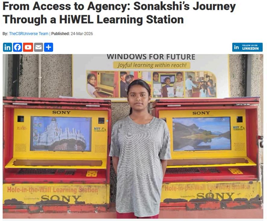 Fourteen-year-old Sonakshi, a Class 9 student,hasbeenvisitingtheHiWELLearning Station for the past four years What began as a curious visit gradually evolved into a journey of discovery, confidence, and leadership. This was a meaningful achievementandareminderofhowfarshe hascome.