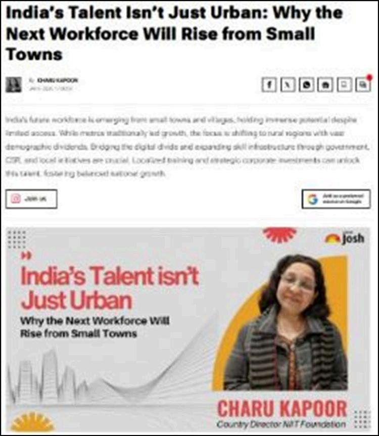 Indiaâs future workforce is increasingly emerging from small towns and villages. By bridging the digital divide and strengthening skill infrastructure through government, CSR, and local initiatives, localized training and strategic investments can unlock this talent anddrivebalancednationalgrowth.