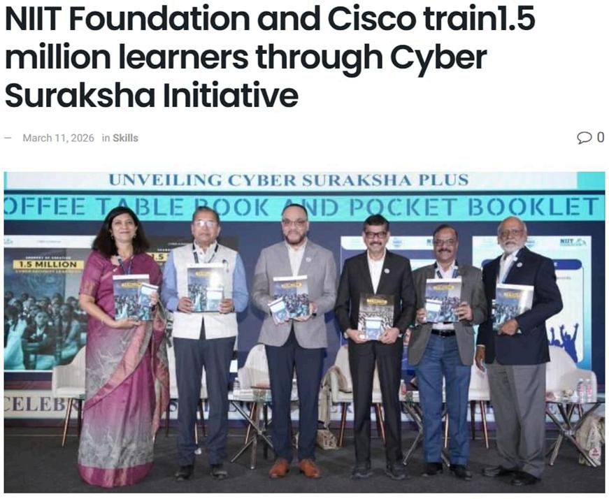 NIIT Foundation, in partnership with Cisco, marked a major milestone under the Cyber Suraksha initiative, empowering 1.5 millionlearnerswithessentialcybersafety awareness and skills. The Cyber Suraksha Plus Milestone Event, held in Mumbai, underscored the growing importance of digital resilience in protecting youth and underserved communities amid rising cyberthreats.