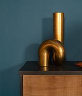 Sta jij voor een grote of kleine ommezwaai van je interieur? Ga dan aan de slag met goud, groen, bruin, petrol blauw of gebroken wit. Het zijn tinten van de trend Vloeibaar die sowieso passen bij de herfst. Bovendien worden ze geassocieerd met duurzaamheid, eerlijke materialen en recycling. En dat zijn ondubbelzinnige kenmerken van deze trend. Welke kleurcombinatie je ook gebruikt, zorg ervoor dat petrol blauw er onderdeel van uitmaakt. Want in de kleurkaart van Vloeibaar is petrol blauw de enige constante.