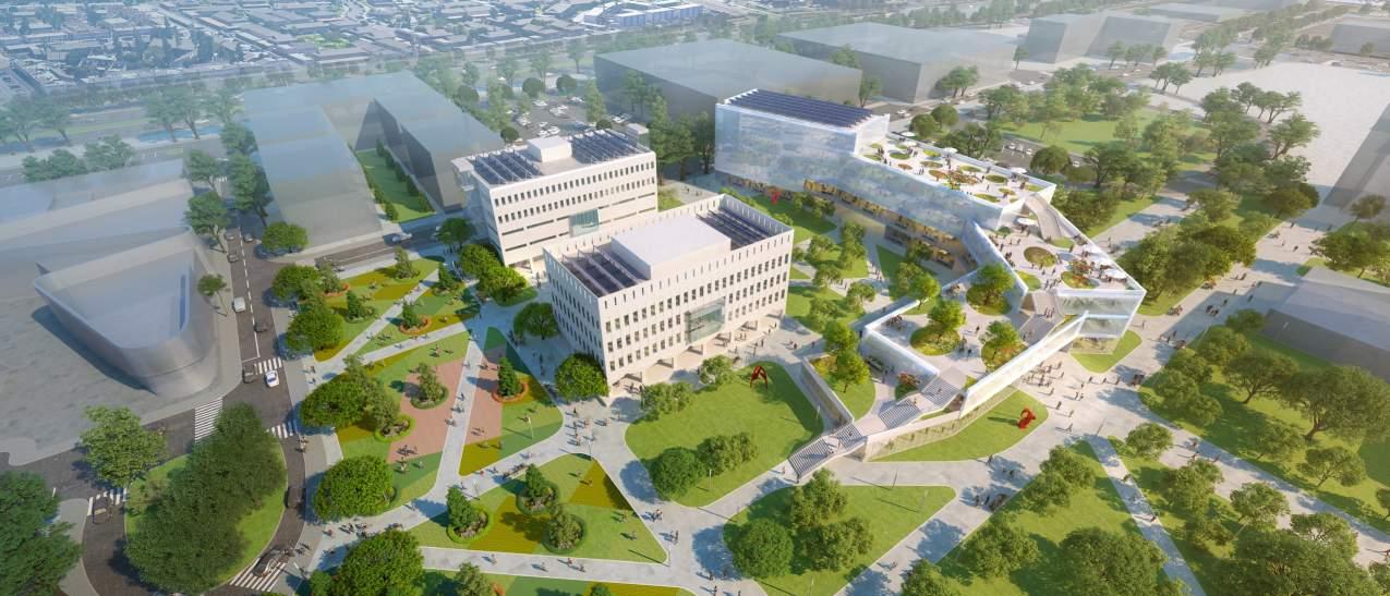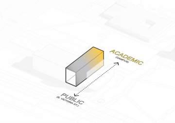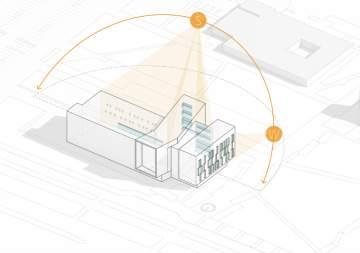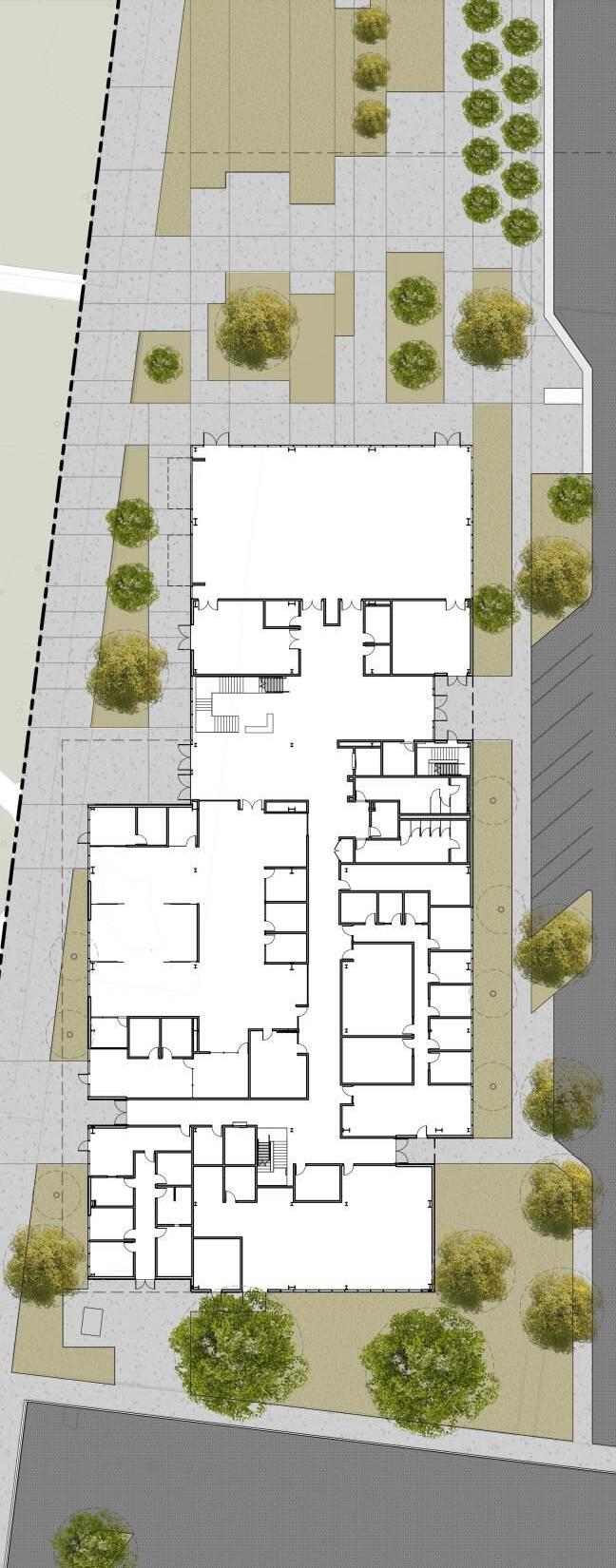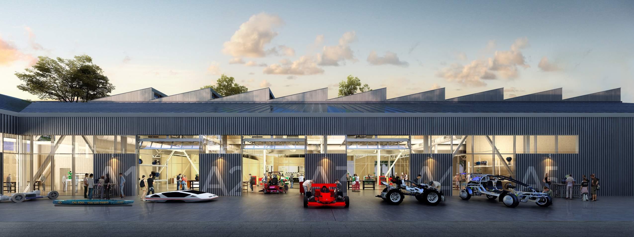 The northeast corner was identified as the primary entry point with potential outdoor plaza. Along the east face of the proposed building, there would be opportunities for building activities and users to spill out for extended making and assembly. The primary service zone would be situated on the south with service access provided off of California Blvd.