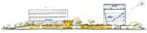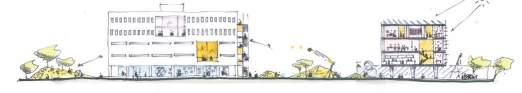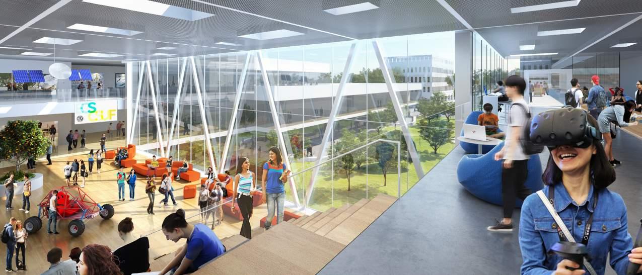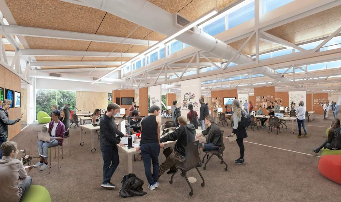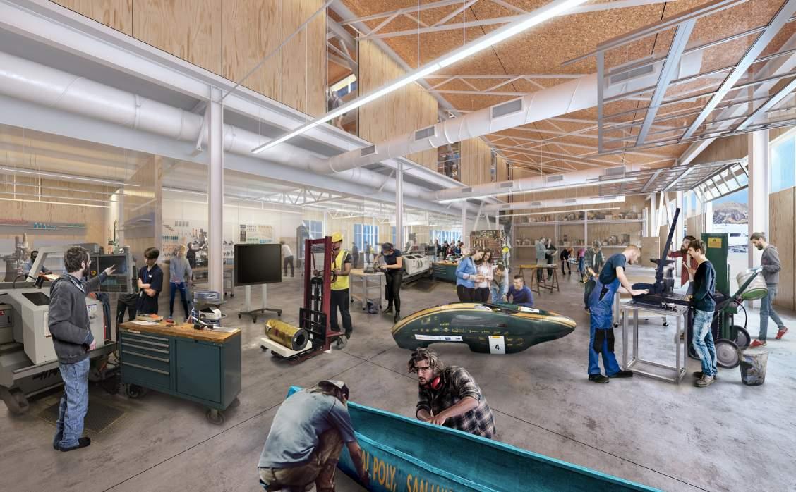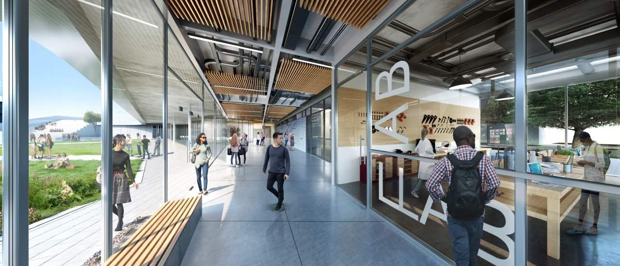 Fabrication programs will be located along the western edge of the site with large area of glazing, exposing the interior space and activities to California Blvd. The student work and engineering projects on display will be the new face for the College of Engineering.