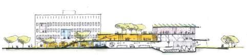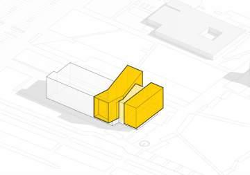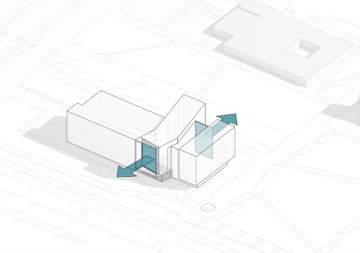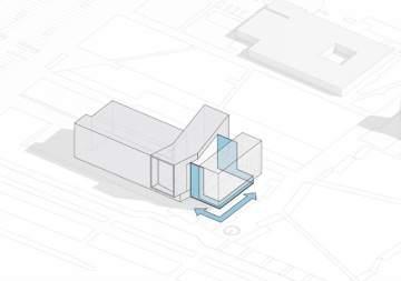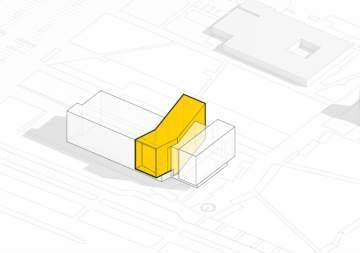 The College of Engineering has identified program and support spaces that are required to be on the ground level, some of which also need direct access to the outdoor. By prioritizing their placement on the given extent of the site, L-shape building form that hugs the existing Engineering 13 Building emerged as the optimal strategy to respond to both the programmatic requirements and the site constraints.