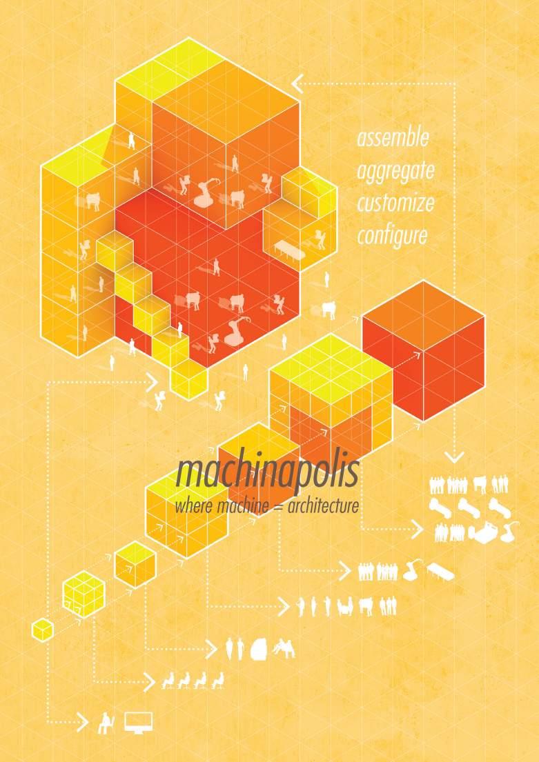 SELECTED AS ONE OF TWELVE HONORABLE MENTION SELECTIONS FOR THE ENTRY ‘MACHINAPOLIS’. A CONCEPT FOR AN ALTERNATE FACTORY TYPOLOGY WHERE THE ARCHITECTURE ITSELF BECOMES THE MACHINE AND VISE VERSA