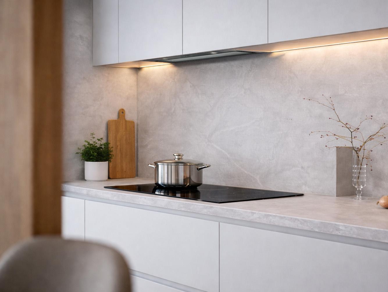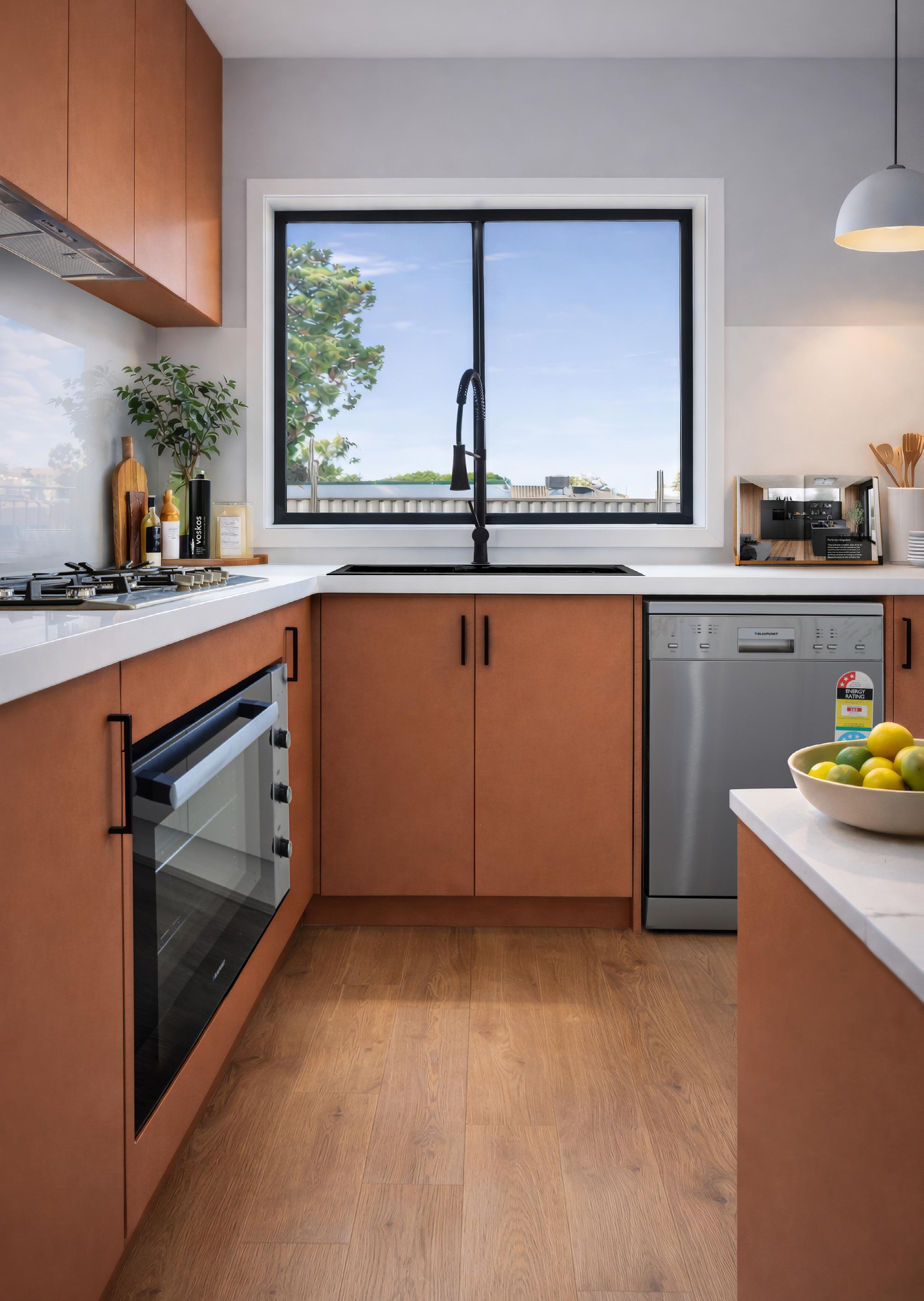Featuring Aspen White for the cabinetry, Cenere for the countertop and splashback, Blaupunkt 90cm Ceramic Cooktop & Blaupunkt 90cm Undermount.