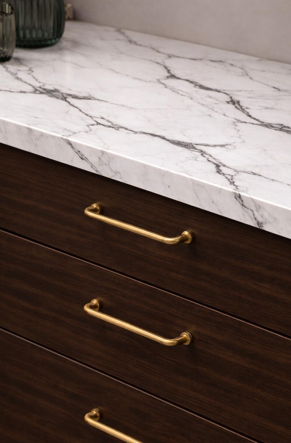 Marble handles elevate interiors by introducing natural stone artistry, refined tactility, and a sense of architectural luxury. Their unique veining and sculptural form enhance cabinetry, creating a considered, high-end design expression throughout the home.