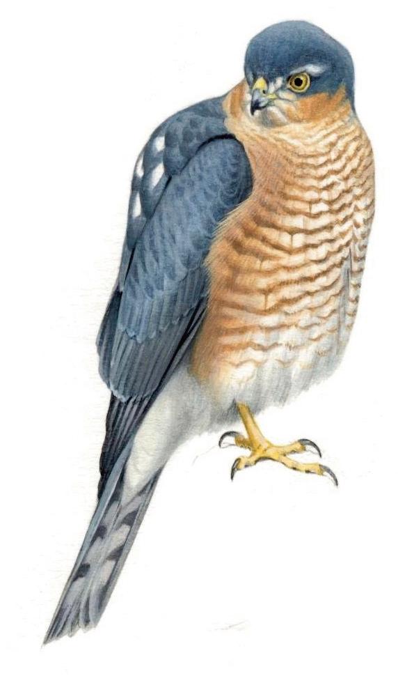 The Sparrowhawk is the villain of the piece as far as our gardens are concerned, for it often preys on our much loved garden song birds, and is mostly the reason that we notice a sudden drop in birds using our feeders. The Sparrowhawk will return again and again until it has either eaten a significant number of our garden birds or they have left for less dangerous gardens in the vicinity. The male is smaller than the female and she is capable of taking a Wood Pigeon – something they regularly do.