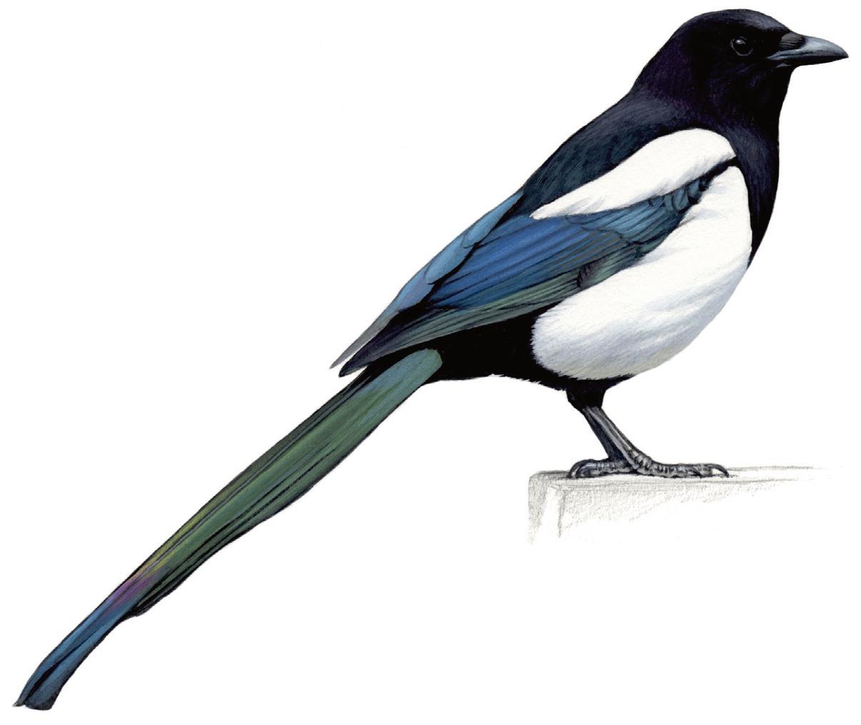 The Magpie, that strikingly-plumaged black and white long-tailed bird, is in fact multi-coloured and when caught in the rays of sunlight displays a myriad of greens and blues that set the tail aflame with colour. Magpies are domineering birds that bully and cajole our other garden birds and take the sweetest tit-bits on offer. To add to their list of crimes they are rather partial to the young of other birds, but nevertheless are a beautiful addition to our gardens and an addition that is relatively a modern phenomena. My earlier experiences of the Magpie was as a bird of the countryside that nested in blackthorn thickets and placed its roofed nest in thorn-protected positions, giving any schoolchild egg robber painful and bloody scratches for their endeavours.