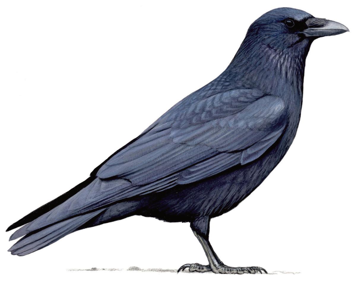 The Carrion Crow is generally seen as a more solitary or paired bird. Although they do sometimes flock, the usual rule is that if you see a single or a pair of this sized bird it is probably the Carrion Crow, whereas a flock are probably Rooks. Carrion Crow pairs nest alone, placing their large nest amidst the branches of trees that, because of the wariness and secrecy of the parents, often go unnoticed during the breeding season.