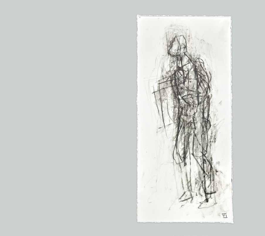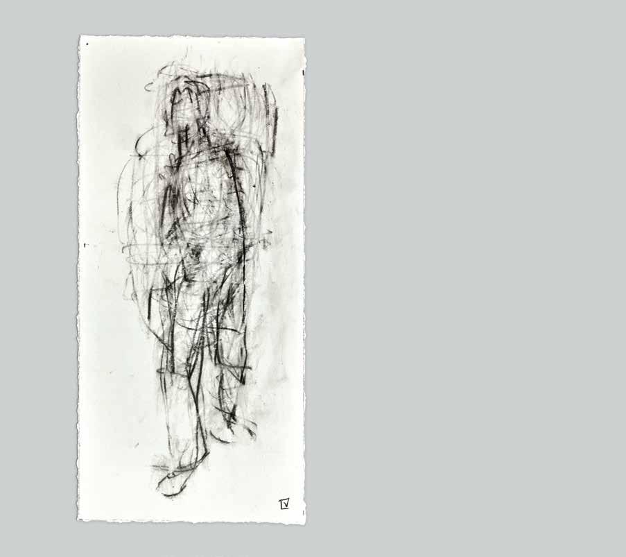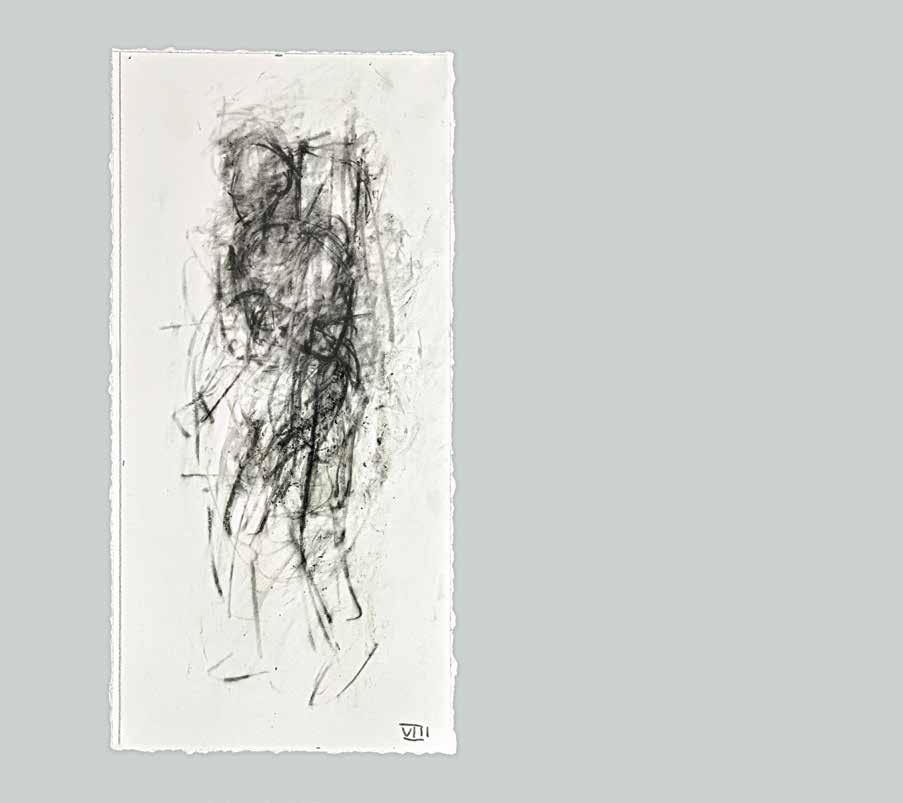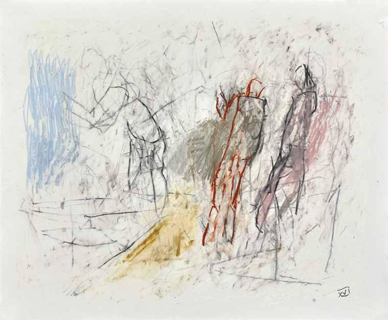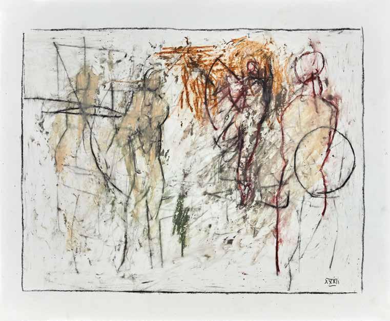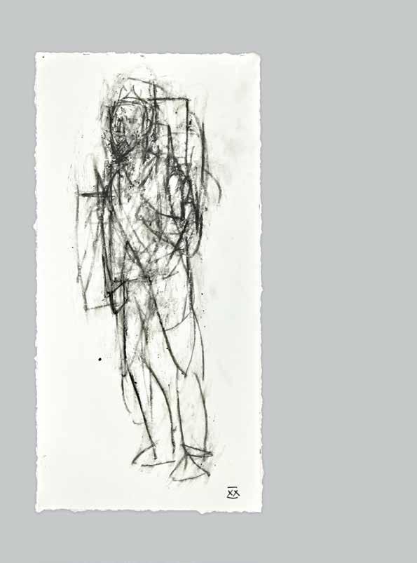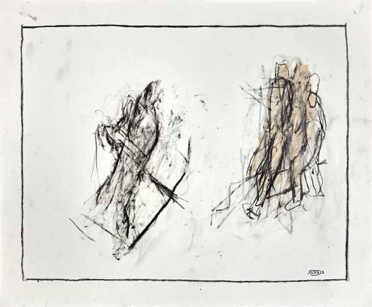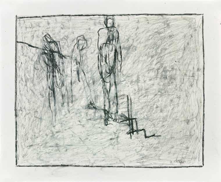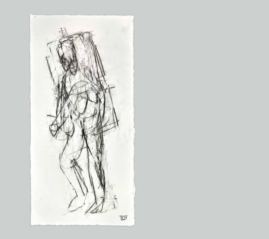 At a subliminal level some of Radell’s images seem to connect with memories: possibly of Old Master paintings and drawings.The traces of transcendence, resurrection and mortality that flicker behind his gestural traces link Radell’s work to the longer history of art. He is attuned to the work of Modernists—Giacometti, de Kooning and Gorky—who channeled the anxieties of their times by re-shaping and re-constituting form. The integrity of Radell’s art is rooted in its insistence that finding is everything. In his view, the past is best understood when it can be reinvigorated with subjec-