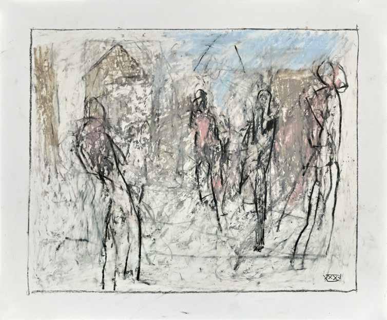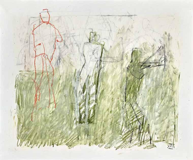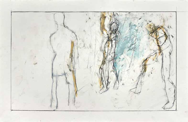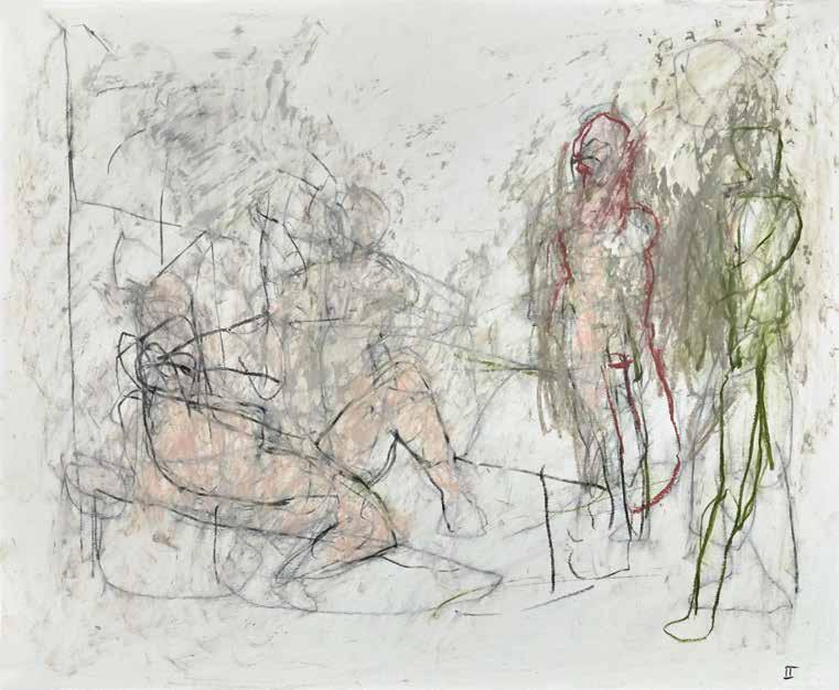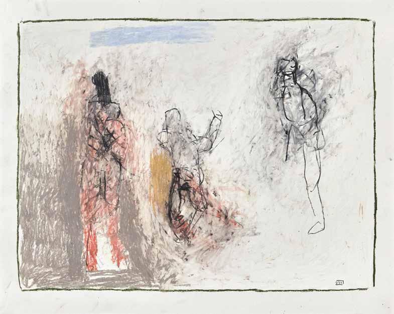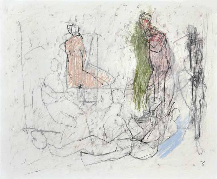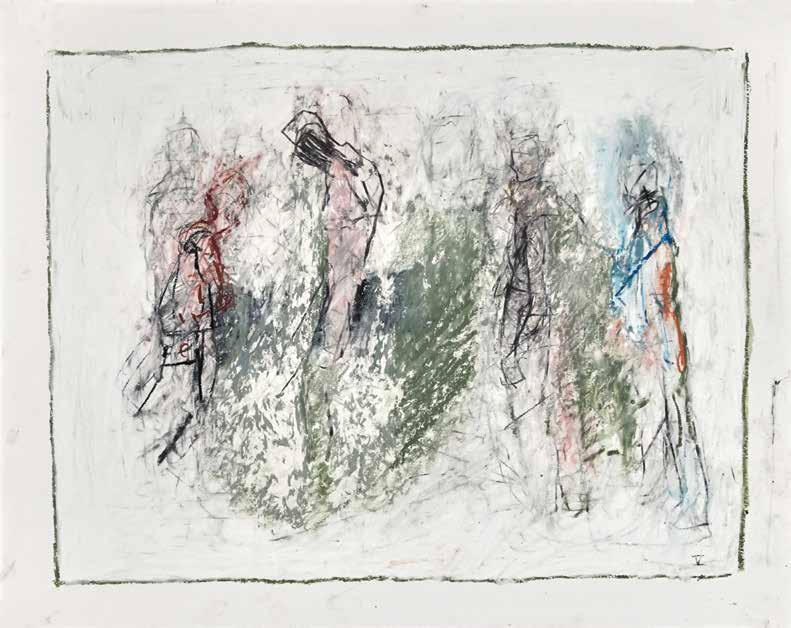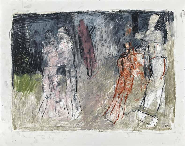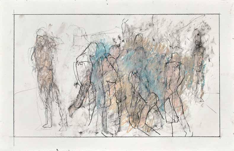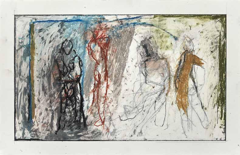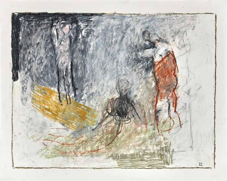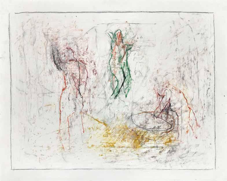 During the summer of 2019, painter Thaddeus Radell taught life drawing at the Mount Gretna School of Art. When he wasn’t teaching, Radell was in his studio drawing constantly, creating well over 130 works, using wax crayons, graphite and oil pastel. Although the school’s scenic location offered the opportunity to work from nature, Radell spent his free time rendering images of the human figure drawn from his imagination. Each of the varied drawings Radell made while at Mount Gretna relies on figurative imagery, some invented and some inspired by studies made in his sketchbook. A selection of these studies have been selected for this catalog.