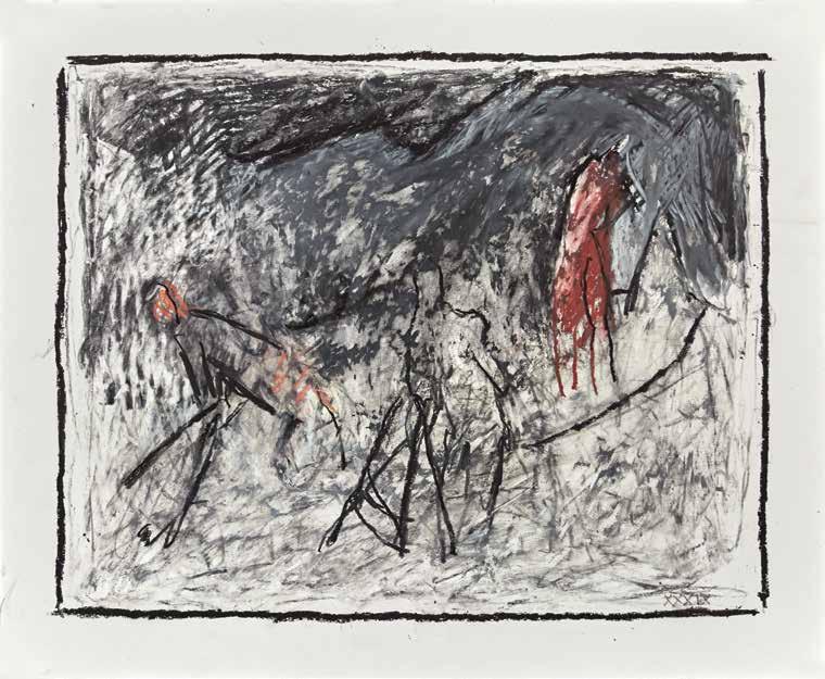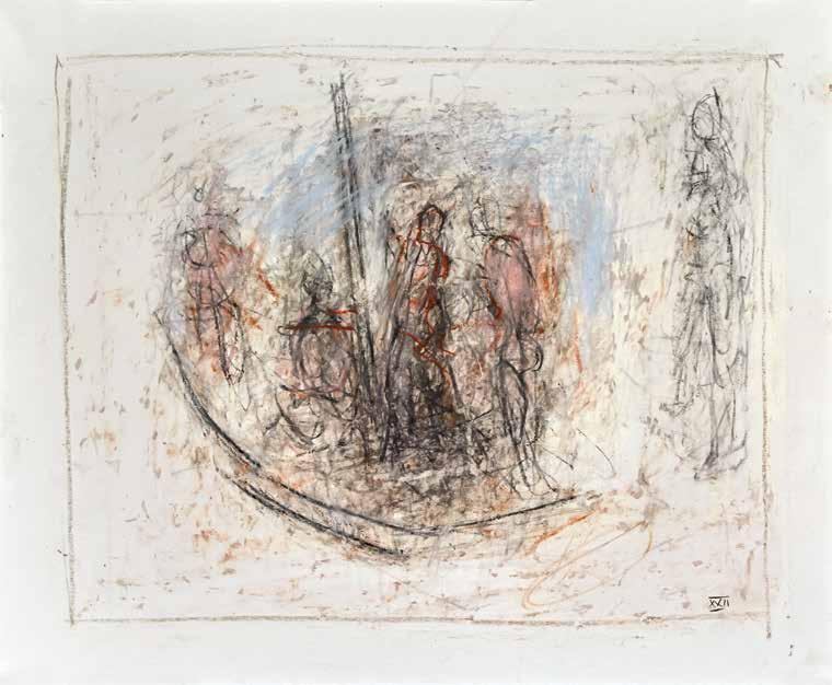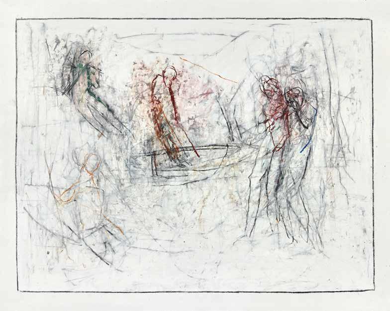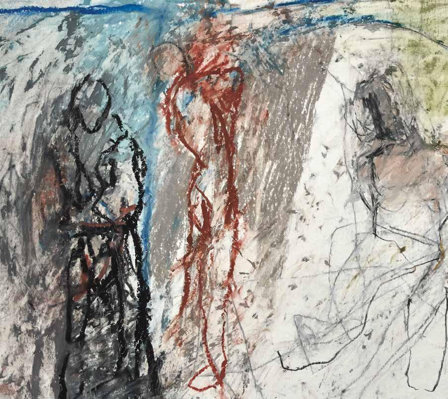 On the Banks of the Acheron (detail) 2019, oil pastel, graphite and wax crayon on Bristol paper, 14 x 17 in.