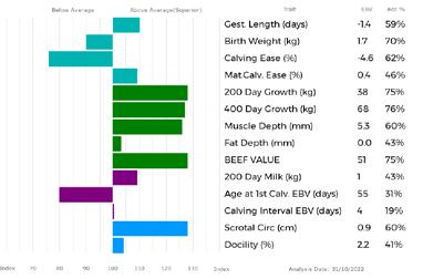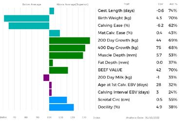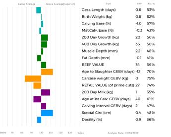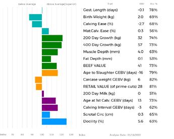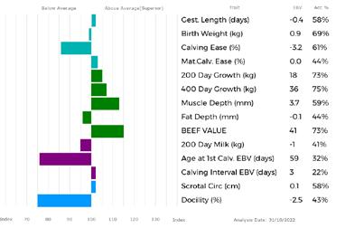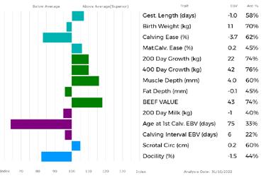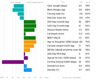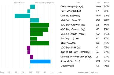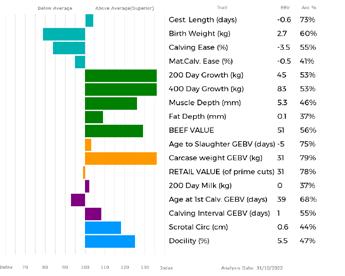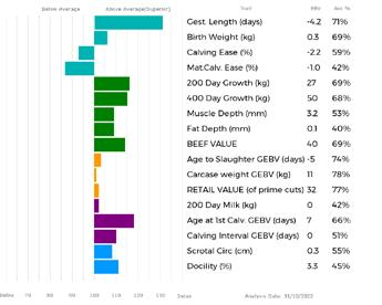 Got by AI Natural Calf Myostatin: NT821/NT821 Gen. Colour: Polled: gs. MERESIDE CHALLENGER HCGC-060 ggs. OAKLEY OSCAR PJO-019 Sire MUIRHOUSE LAGONDA AAN95-076 ggd. BROADMEADOWS URYCINE CAVU-011 gd. MUIRHOUSE ELICHA AANE-021 ggs. RAKE TERENCE JKT-020 ggd. PARKGATE TRACY PXT-001 gs. SARKLEY JAGUAR PBO14-1578 ggs. PLUMTREE FANTASTIC CQE10-023 Dam SARKLEY ORRELA PBO18-1980 ggd. SARKLEY AMANDA PBO05-114 gd. SARKLEY VARRIANE PBO04-078 ggs. TUNNELBY MONKEYTRICKS TAP96-001 ggd. SARKLEY NARRIANE PBO97-075