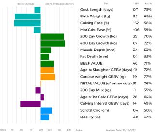AMPERTAINE FOREMAN (MGD10-049) sire – Wilodge Cerberus, dam – Ampertaine Bath-sheba (by Sympa). His progeny includes Loosebeare Ignition 8,200gns Carlisle May 2015. Ampertaine Ikea 6,000gns and Ampertaine Ingrid 4,500gns Ampertaine sale May 2015. Ball-inloa Jaegerbomb Junion Champion and sold for 24,000gns, Ballinloan Jericho 10,000gns, Goldies Jeronimo 9,500gns & Ampertaine Jarvis 8,500gns Carlisle October 2015. Procter Lilac 4,000gns Carlisle Weaned Calf Sale December 2015. Eniver Jazzman 7,500gnd Car-lisle Feb 2016. Goldies Jane 6,000gns Carlisle May 2016. Ballinloan Lazer 10,000gns, Ball-inloan Lethal 10,000gns and Procters Laval Intermediate Champion and sold for 9,000gns Carlisle Oct 2016. Procters Leiha 8,000gns Carlisle May 2017. Ballinloan Lush Reserve In-termediate Champion and sold for 14,000gns, Procters Livingstone 7,500gns and Ballinloan Lambourghini 7,500gns Carlisle May 2017. Ballinloan Mountain 20,000gns and Ballinloan Master Senior male Champion and sold for 12,000gns Carlisle Oct 2017. Grahams Marjorie 10,000gns Carlisle Red Ladies Derby Dec 2017. Eniver Maybe 12,000gns Carlisle Feb 2018. Ampertaine Norseman 11,000gns and Goldies Nugget 10,000gns Carlisle Oct 2018. Procters Nellgwyn Reserve Champion 17,000gns Carlisle Red Ladies Derby Dec 2018. Goldei Norseman 9,000gns Carlisle Feb 2019. Nebo Oliver 7,500gns Carlisle May 2019. Reddings Oscar 5500gns, Goldies Oxo 14,000gns, Goldies Owain 30,000gns, Goldies Olympia 30,000gns Carlisle Feb 2020. Glenlimo Ocean 5800gns Carlisle Online Sale May 2020. Ampertaine Pathfinder 6800gns Carlisle Oct 2020. Dinmore Primadonna 5500gns & Lodge Plush 6500gns Carlisle Red Ladies Derby 2020. Woodmarsh Peachy 7500gns Carlisle May 2021. Huntershall Peggypiper 4200gns, Woodmarsh Paramount 6500gns, Brockhurst Precision 6000gns, Grahams Professor 7000gns, Ampertaine Phantom 9500gns & Grahams Rooney 28,000gns Carlisle May 2021. Procters Lanita 7200gns, Procters Levity 5500gns, Procters Janita 13,000gns, Procters Ludette 5200gns, Procters Lerin 6000gns, Procters Nwen 10,000gns, Procters Nawen 8200gns, Procters Polette 4200gns & Procters Pri-madonna 4000gns Procters Dispersal Sale August 2021. Westpit Royaljen 9500gns, Goldies Nicola 6500gns, Woodmarsh Regent 5000gns Carlisle Oct 2021. Bangtidy Rosegold 8000gns Carlisle Red Ladies Derby Dec 2021. Grahams Rambo sold for 10,000gns in Feb 2022. Petteril Rockstar 7,000gns Carlisle June 2022. Cowin Supreme sold for 16,000gns at the anniversary sale in July 2022. Ampertaine Spark sold for 15,000gns at Carlisle October 2022.