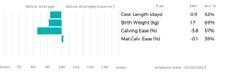 c) The numeric EBV & GEBV values on the charts can be used to further refine comparison with the breed using the Breed Benchmark which is updated annually.