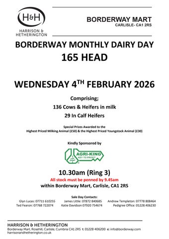 ANIMAL WELFARE: Vendors and Purchasers should note the CODE OF PRACTICE published by the Livestock Auctioneers’ Market Committee for England and Wales IS OPERATIVE IN BORDERWAY MART and that weakly, unhealthy or injured stock will be refused entry by the Auctioneers. Enquiries should be directed through the market office to the Auctioneers’ ANIMAL HEALTH and WELFARE OFFICER (Mr Andrew Templeton).