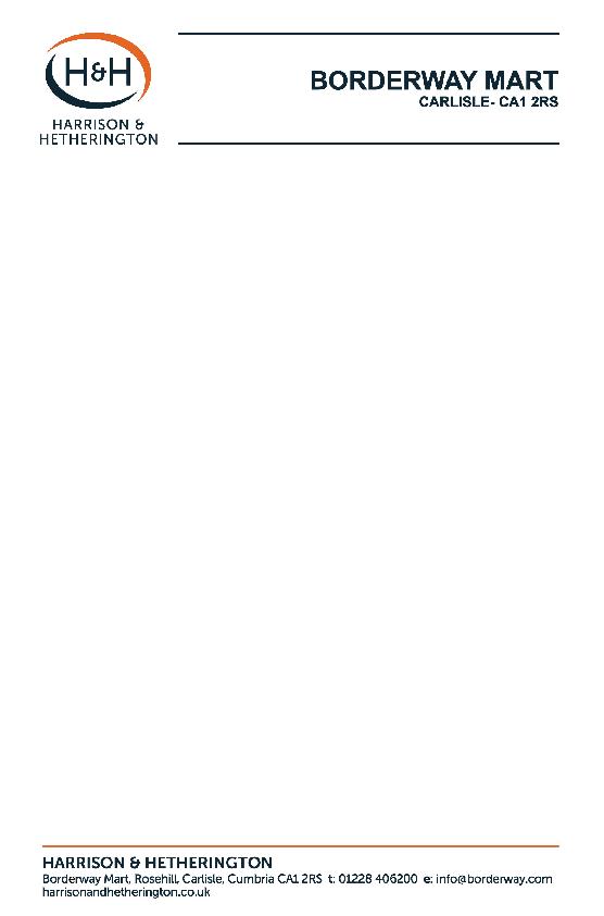 Sold under the conditions of sale as displayed in the mart recommended by the Livestock Auctioneers Association for England and Wales. All heifers offered for sale through this ring are not warranted as breeders unless otherwise stated. Please note that ear numbers for all cattle must be given to the Auctioneers on the respective entry forms supplied.