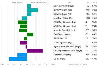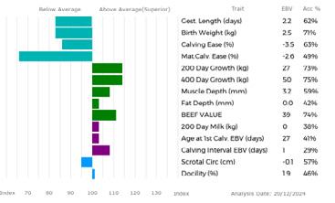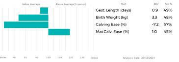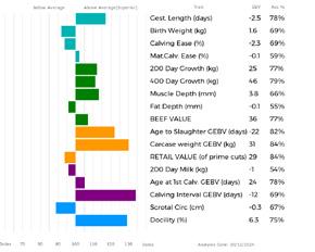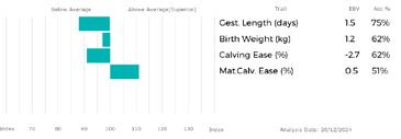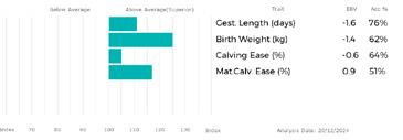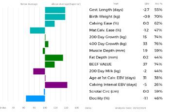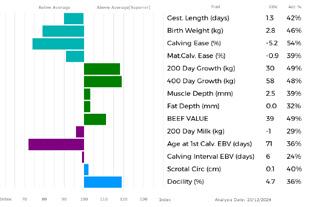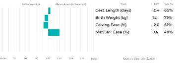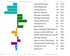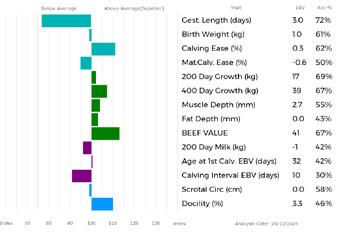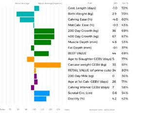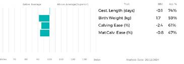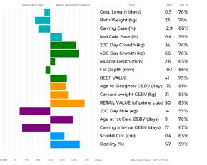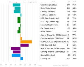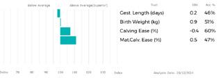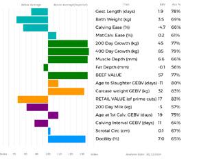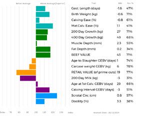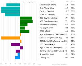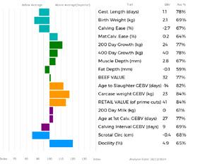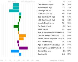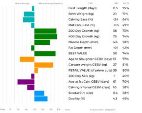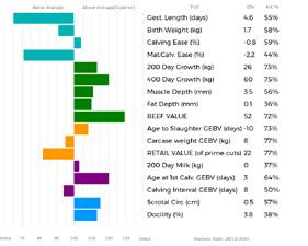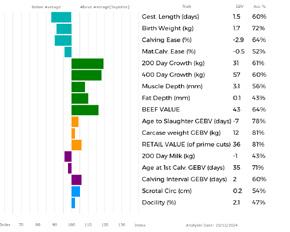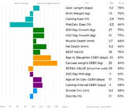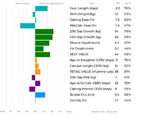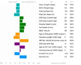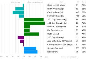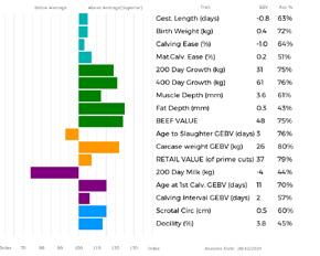 ✓ Bars that lie to the right of that line indicate EBVs/GEBVs that are above average. The further to the right they lie, the higher above Breed Average they are.