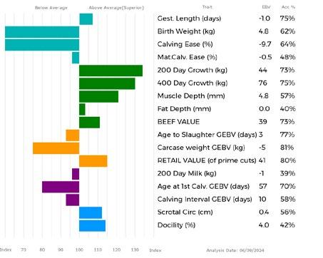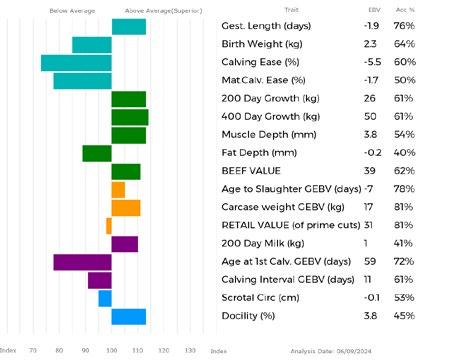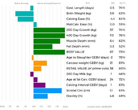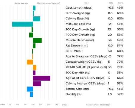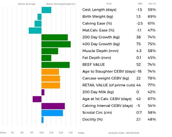 ✓ Bars that lie to the right of that line indicate EBVs/GEBVs that are above average. The further to the right they lie, the higher above Breed Average they are.
