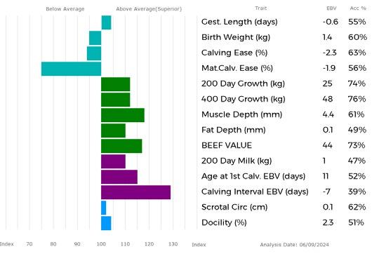 A Myostatin genotype is a further bit of information that may help your decision, but it should be used in conjunction with wider information such as Estimated Breeding Values (EBVs), which bring together information of actual performance from the animal itself, its herdmates and its relatives to predict genetic merit, and your own judgment on type and pedigree.