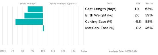 ✓ Equally, bars that lie to the left of the line indicate EBVs/GEBVs that are below Breed Average. The further to the left they are, the further below Breed Average they are.