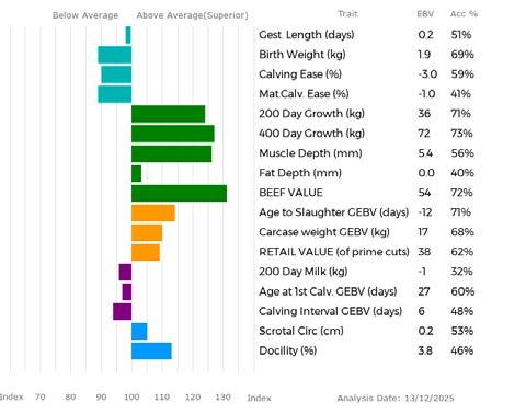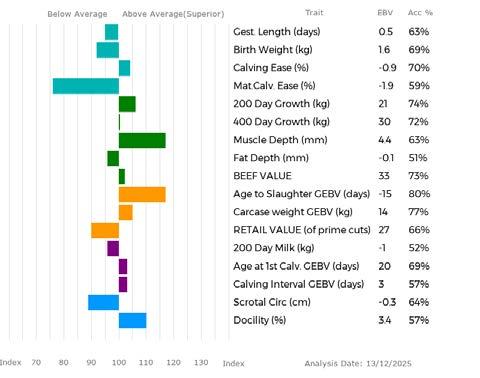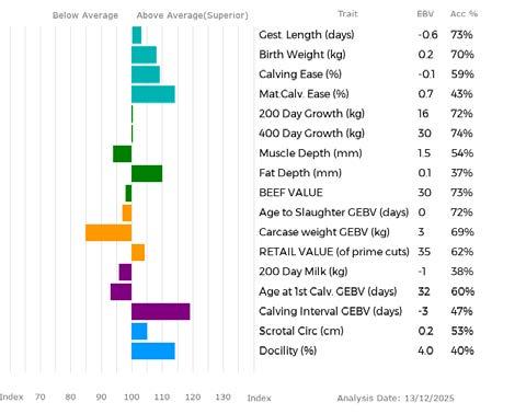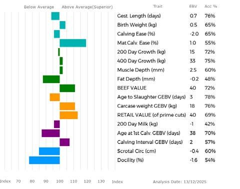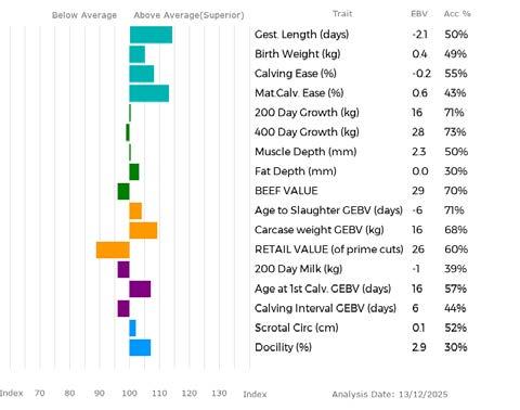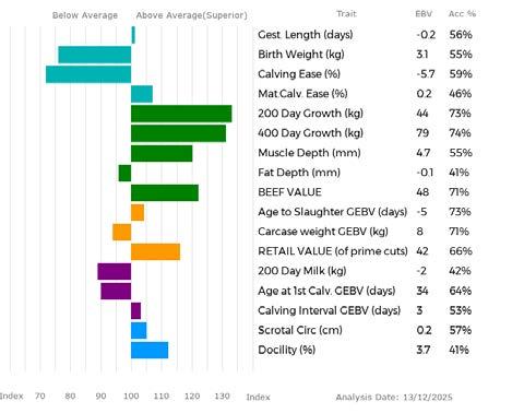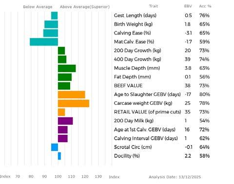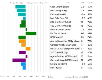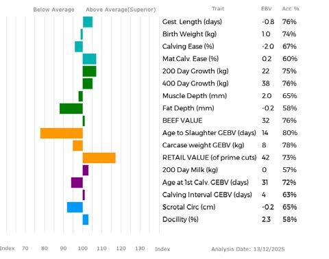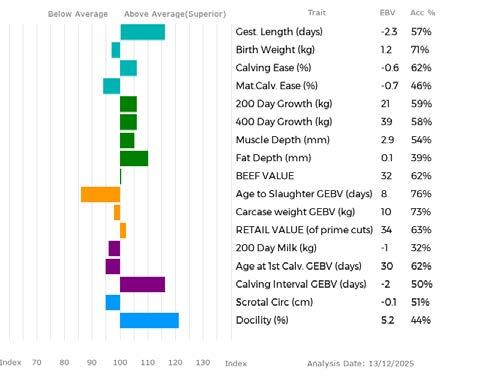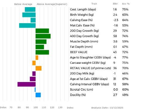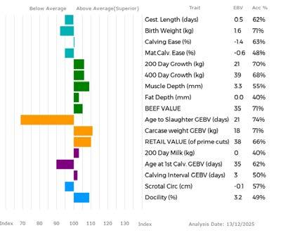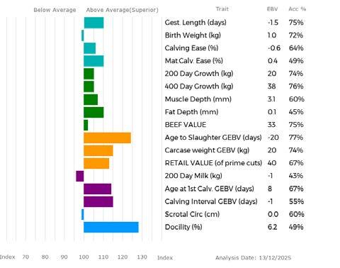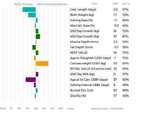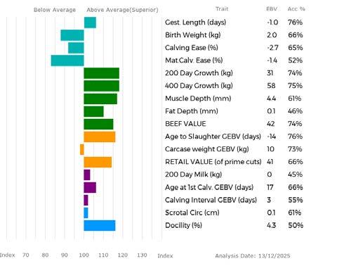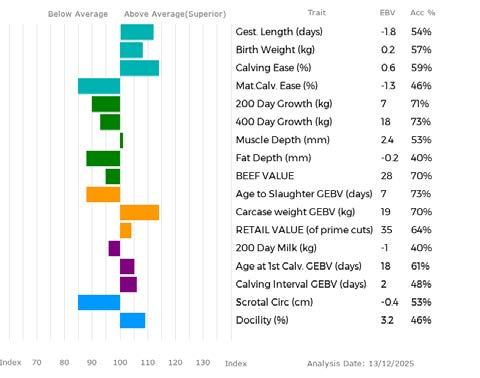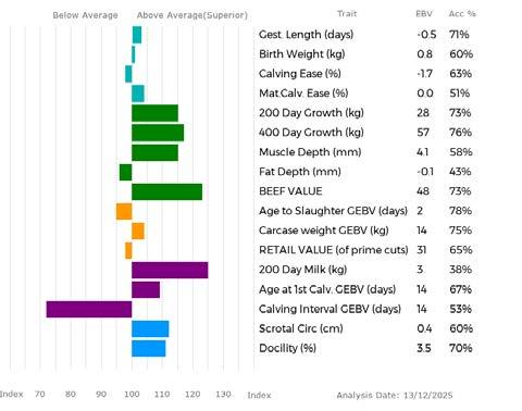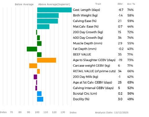 ✓ Bars that lie to the right of that line indicate EBVs/GEBVs that are above average. The further to the right they lie, the higher above Breed Average they are.