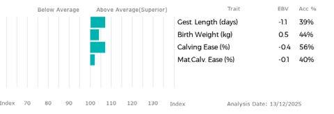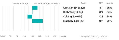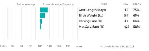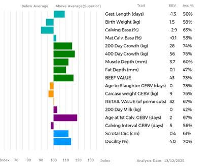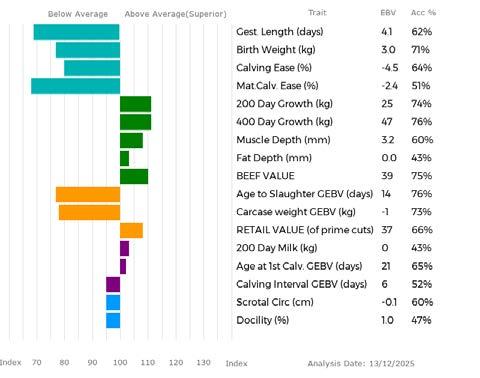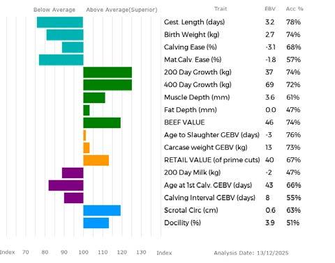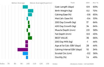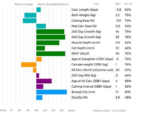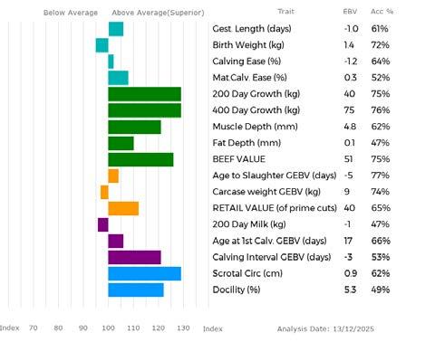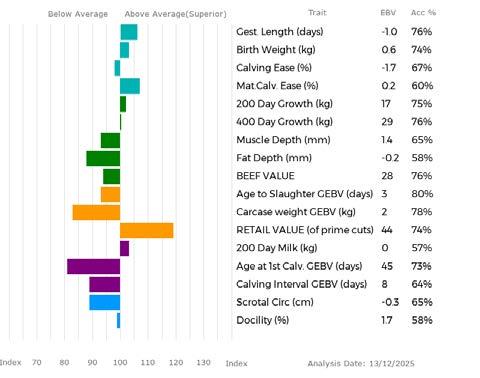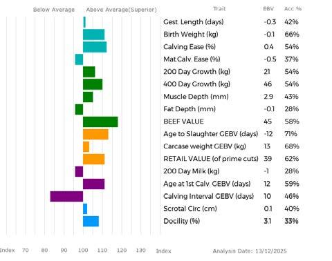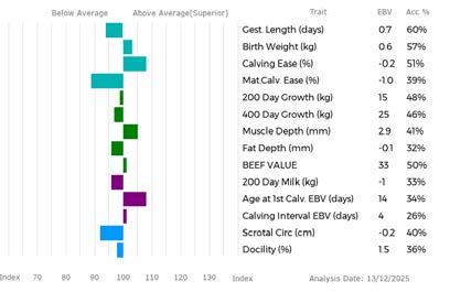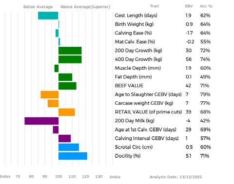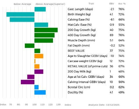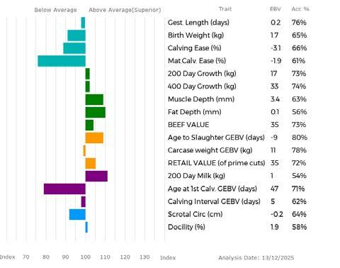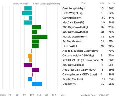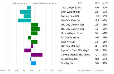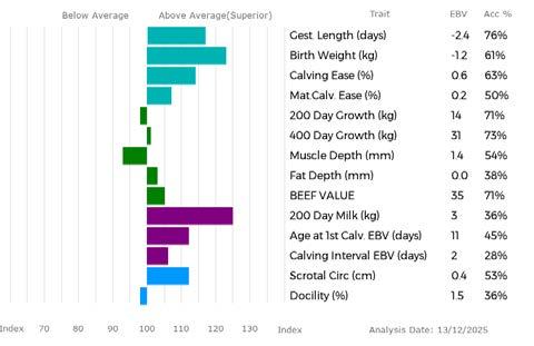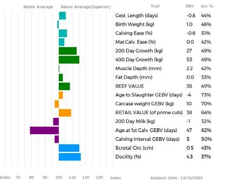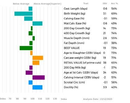 ✓ Bars that lie to the right of that line indicate EBVs/GEBVs that are above average. The further to the right they lie, the higher above Breed Average they are.