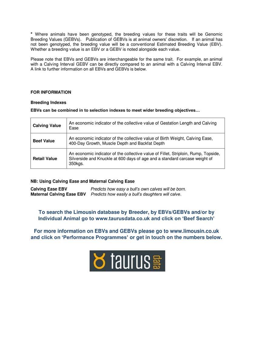 The pedigree, performance, DNA, health information and footnotes included in Society sale catalogues is as supplied by, or on behalf of the vendor. The responsibility for the accuracy of the information therefore rests solely with the vendor and not with the British Limousin Cattle Society Ltd (BLCS). It should be noted that the Estimated Breeding Values for all animals change over time, as new performance records come available. While the BLCS and Genesure Ltd seek to ensure that the information contained in catalogues is accurate at the time of printing in accordance with their terms and conditions, no warranty is given in respect thereof by the BLCS and, to the maximum extent permitted by law, the BLCS shall have no liability for any loss, damage or injury howsoever caused (including that caused by negligence) or suffered directly or indirectly in relation to information and opinions contained in or omitted from this publication. Genesure Ltd’s liability is limited to the extent set out in its terms and conditions (a copy is available from the BLCS office upon request).