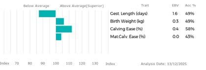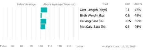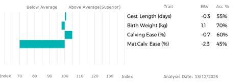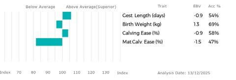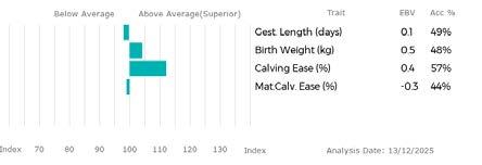 ✓ Equally, bars that lie to the left of the line indicate EBVs/GEBVs that are below Breed Average. The further to the left they are, the further below Breed Average they are.