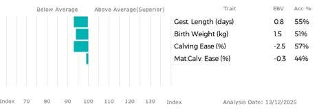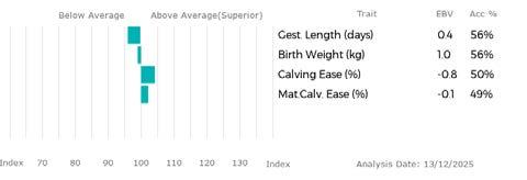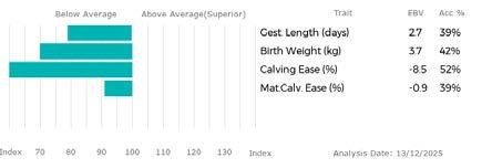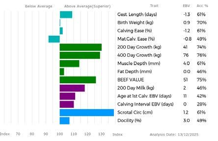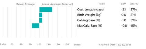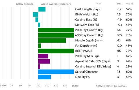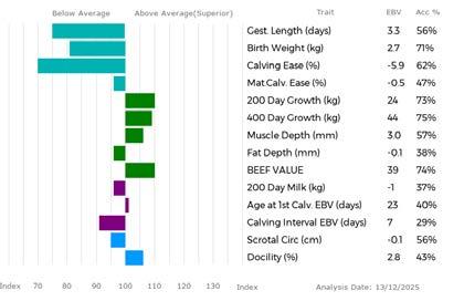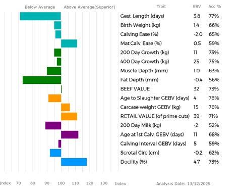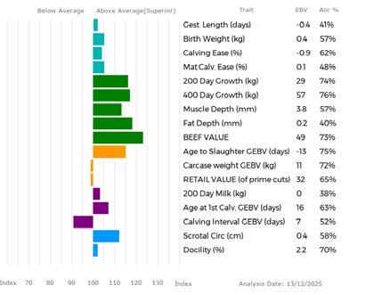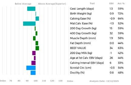 b) Accuracy Values (Acc%) are expressed as a % and indicate the quantity and quality of records used to produce each EBV, GEBV or Index. The closer they are to 100%, the more accurate the EBV. Highly accurate values are less likely to change over time.