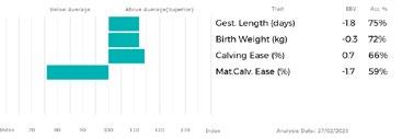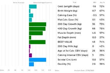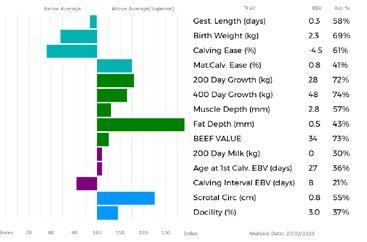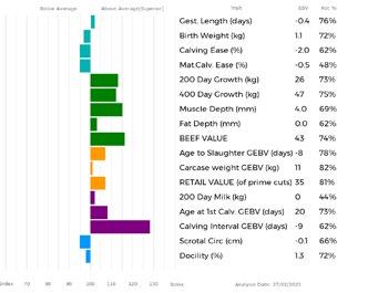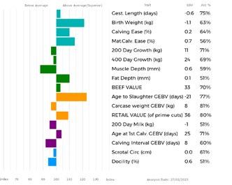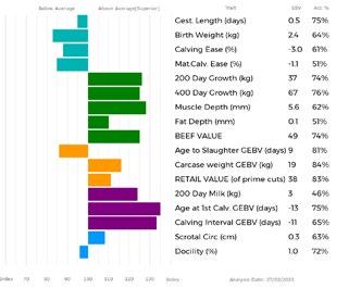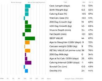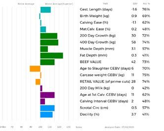 ✓ Bars that lie to the right of that line indicate EBVs/GEBVs that are above average. The further to the right they lie, the higher above Breed Average they are.