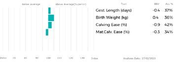 ✓ Bars that lie to the right of that line indicate EBVs/GEBVs that are above average. The further to the right they lie, the higher above Breed Average they are.