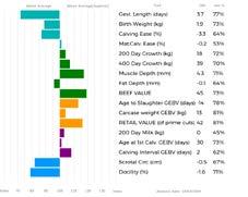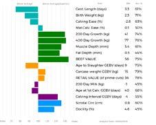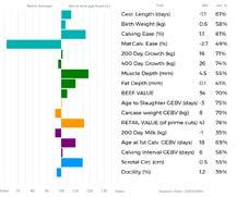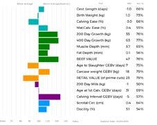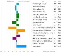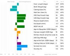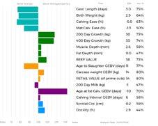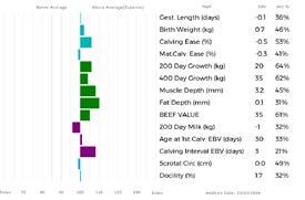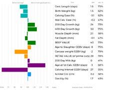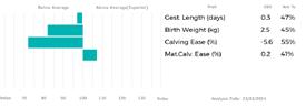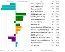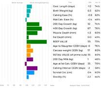 ✓ Bars that lie to the right of that line indicate EBVs/GEBVs that are above average. The further to the right they lie, the higher above Breed Average they are.