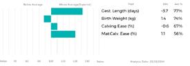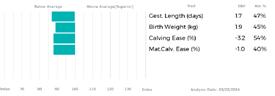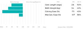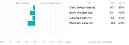 ✓ Equally, bars that lie to the left of the line indicate EBVs/GEBVs that are below Breed Average. The further to the left they are, the further below Breed Average they are.