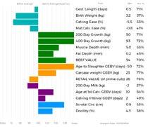 c) The numeric EBV & GEBV values on the charts can be used to further refine comparison with the breed using the Breed Benchmark which is updated annually.