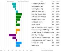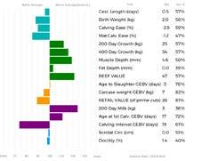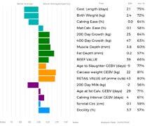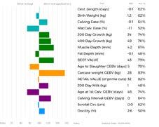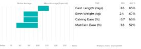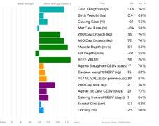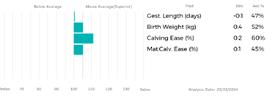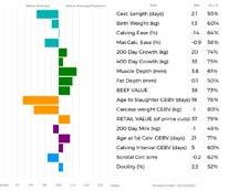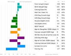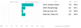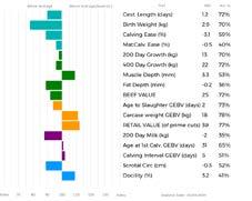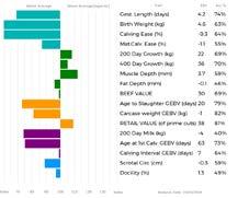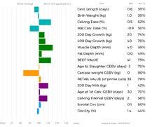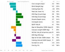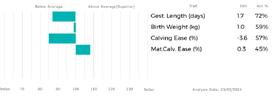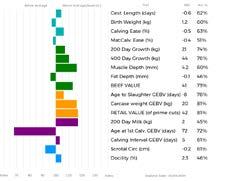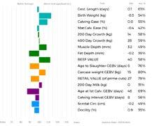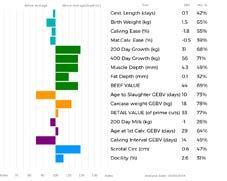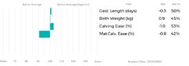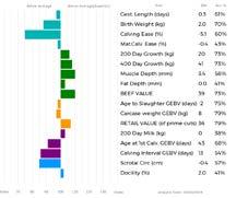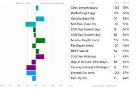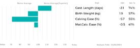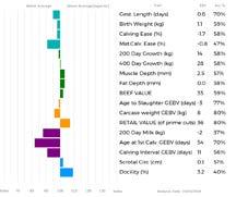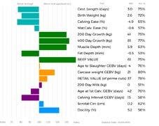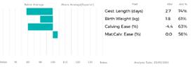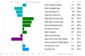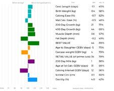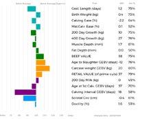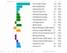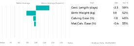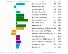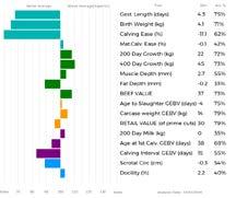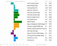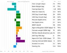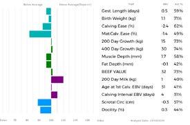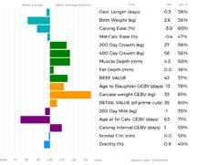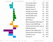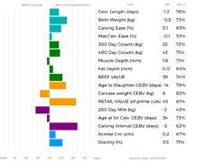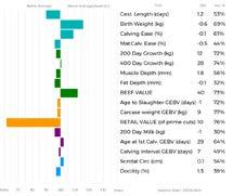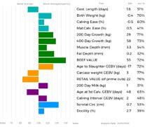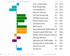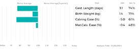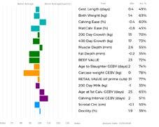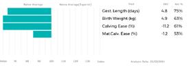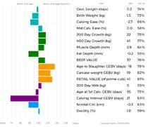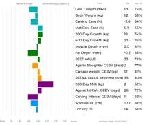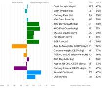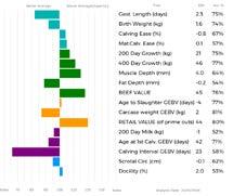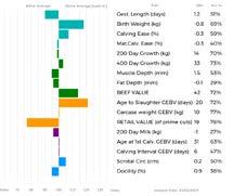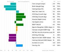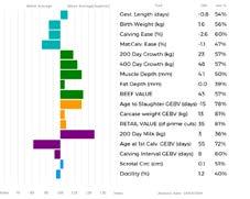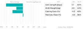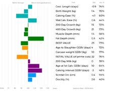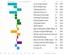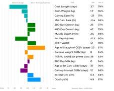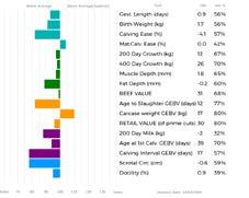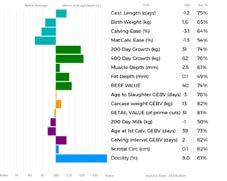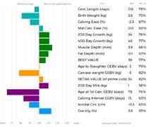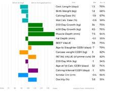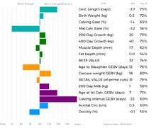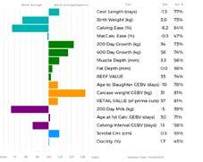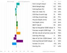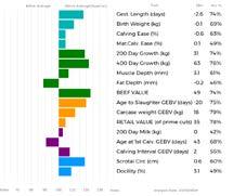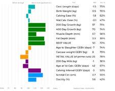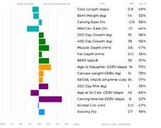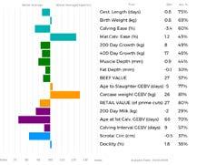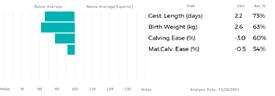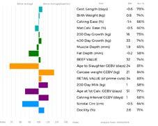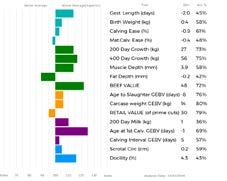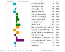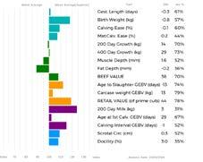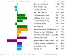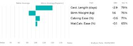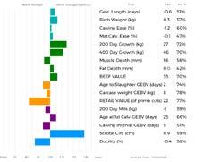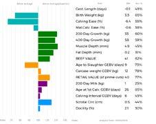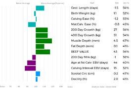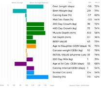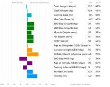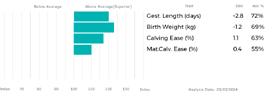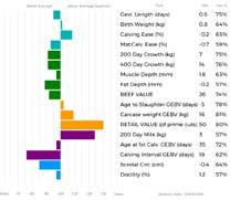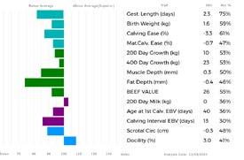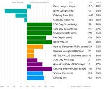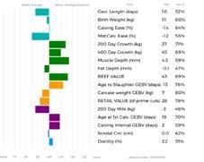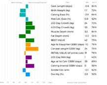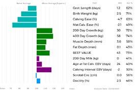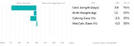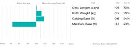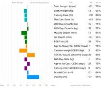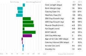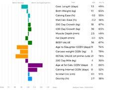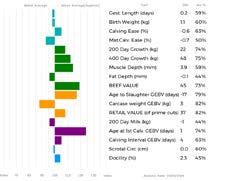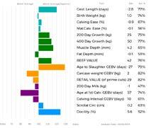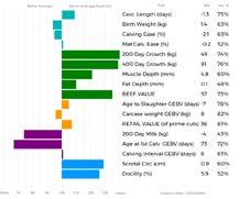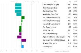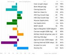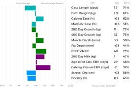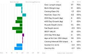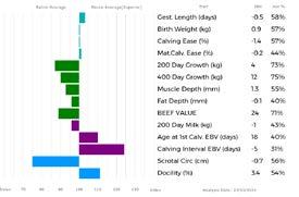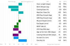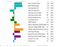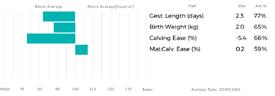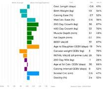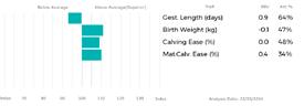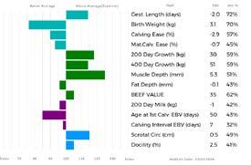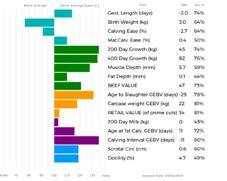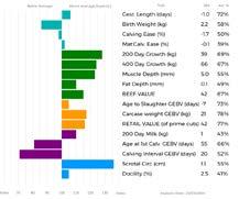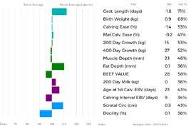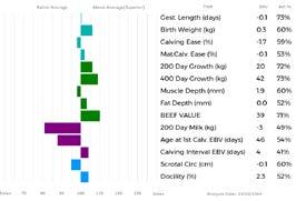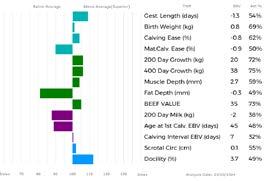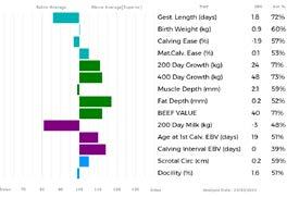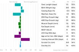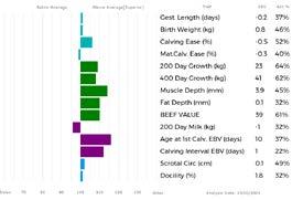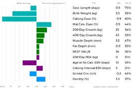 ✓ Bars that lie to the right of that line indicate EBVs/GEBVs that are above average. The further to the right they lie, the higher above Breed Average they are.