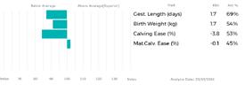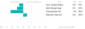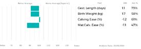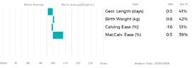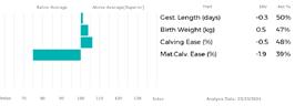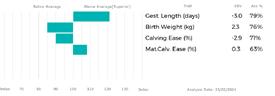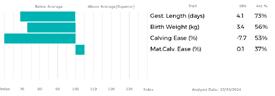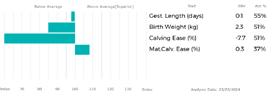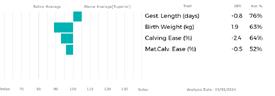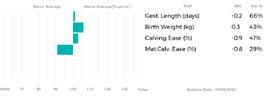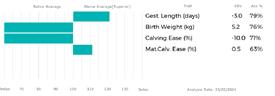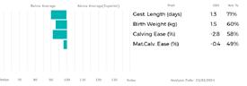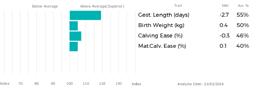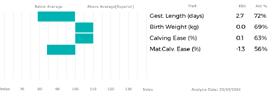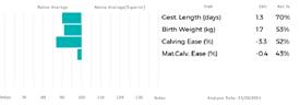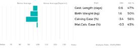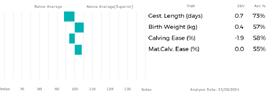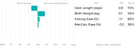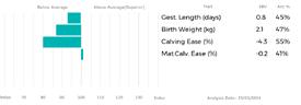✓ Equally, bars that lie to the left of the line indicate EBVs/GEBVs that are below Breed Average. The further to the left they are, the further below Breed Average they are.