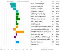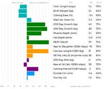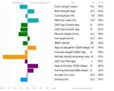 c) The numeric EBV & GEBV values on the charts can be used to further refine comparison with the breed using the Breed Benchmark which is updated annually.