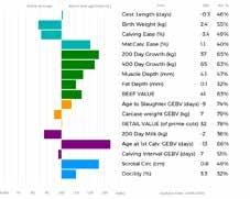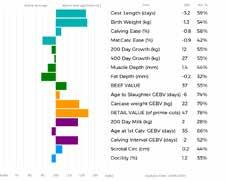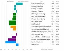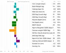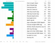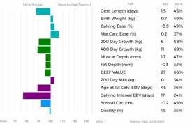 ✓ Bars that lie to the right of that line indicate EBVs/GEBVs that are above average. The further to the right they lie, the higher above Breed Average they are.