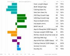 c) The numeric EBV & GEBV values on the charts can be used to further refine comparison with the breed using the Breed Benchmark which is updated annually.