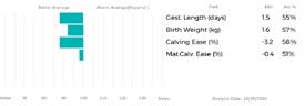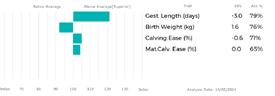 ✓ Equally, bars that lie to the left of the line indicate EBVs/GEBVs that are below Breed Average. The further to the left they are, the further below Breed Average they are.