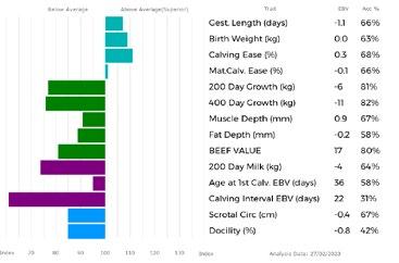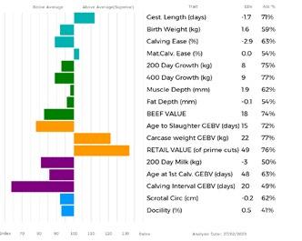 ✓ Bars that lie to the right of that line indicate EBVs/GEBVs that are above average. The further to the right they lie, the higher above Breed Average they are.