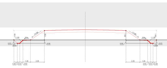 Далан ухмал, ургамлын үе, шуудуу, налуу газрын бэхэлгээ зэрэг газар шорооны ажлууд төлөвлөхөөс гадна хучилтын үеүүд, хөвөөг төлөвлөв.
