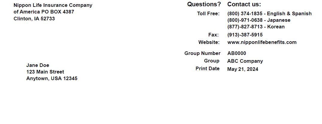 If you have any questions or need any assistance regarding this Notice or yoru privacy rights, you may call Nippon Life Insurance Company of America at: English (800)-374-1835; Japanese (800) 971-0638; or Korean (877)-827-8713.