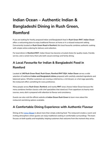 Indian Ocean – Authentic Indian & Bangladeshi Dining in Rush Green, Romford