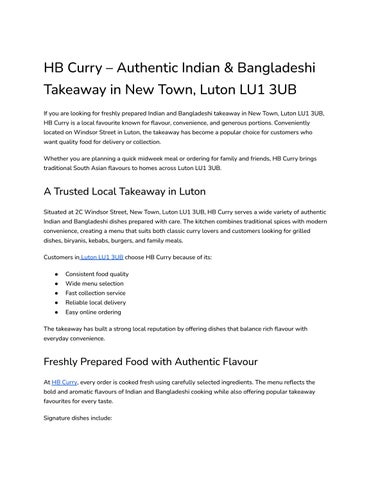 HB Curry – Authentic Indian & Bangladeshi Takeaway in New Town, Luton LU1 3UB