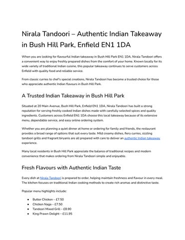 Nirala Tandoori – Authentic Indian Takeaway in Bush Hill Park, Enfield EN1 1DA