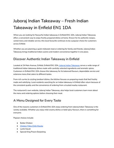 Juboraj Indian Takeaway – Fresh Indian Takeaway in Enfield EN1 1DA